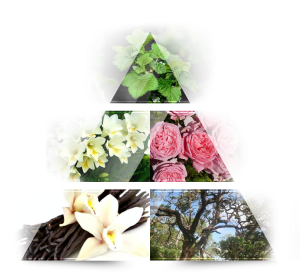 of mandarin, bergamot, blackcurrant and litchi aromas, based on floral and woody heart